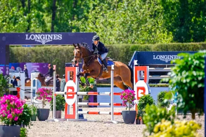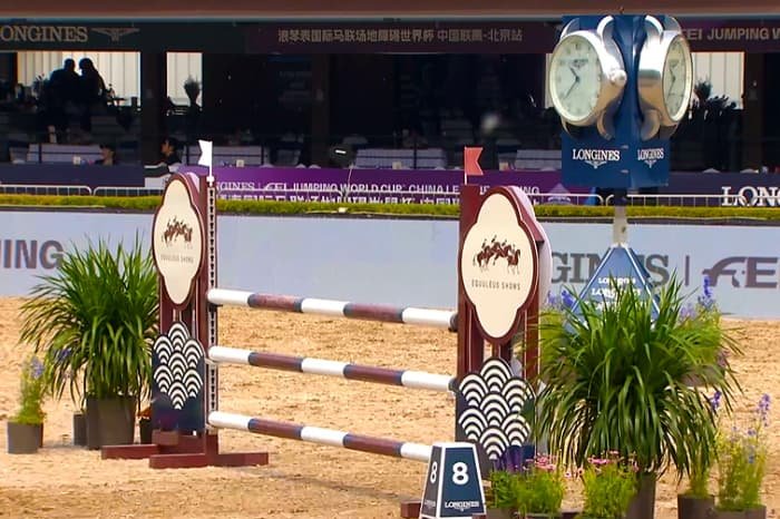 In the 1.40M Longines World Cup qualifiers, a route with a total of 12 obstacles and 15 jumps (including a double combination obstacle of 4AB and a triple combination obstacle of 7ABC) was set up for the 39 pairs participating in the competition, with an allowable time of 81 seconds
