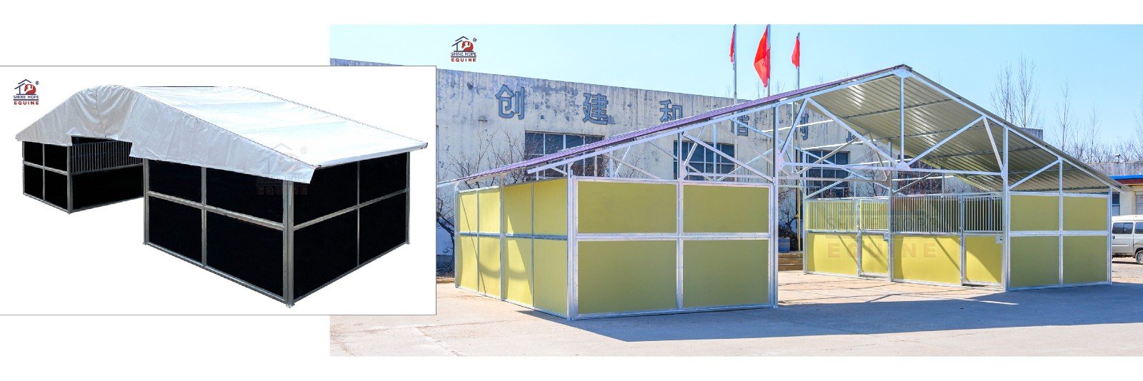 The portable horse stalls and portable horse stables from ShineHope Equine are designed with functionality, durability, and easy of use in mind. These portable stall structures are typically made of sturdy materials ensuring strength and longevity. They are easy to assemble, disassemble, and transport, are popular using for horse shows, horse events, and horse camping.