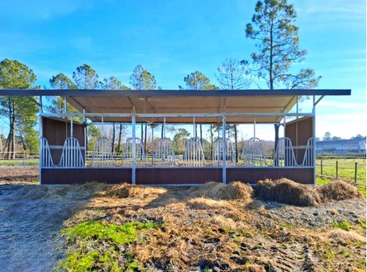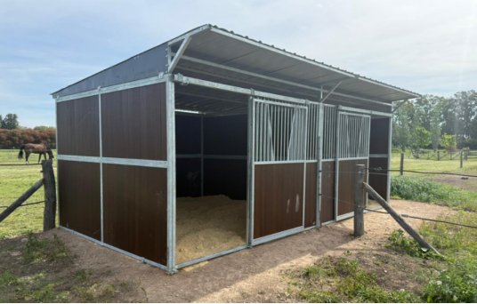 ( Horse shelter at a professional stable in France—hot-dip galvanized frame remains rust-free after 5 years of outdoor use, maintaining structural integrity)