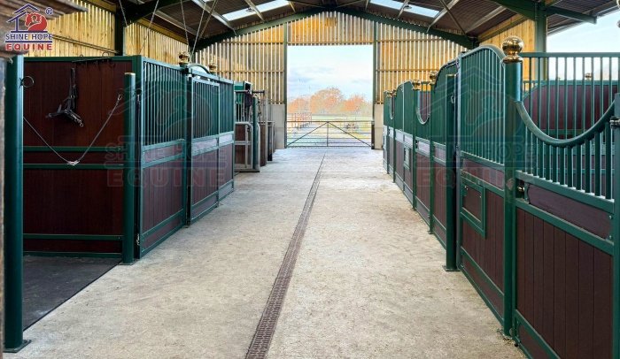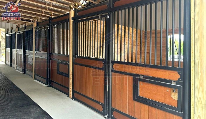 Hinged horse stall doors can work well in traditional farm layouts, while sliding styles are also suitable when layout efficiency matters.